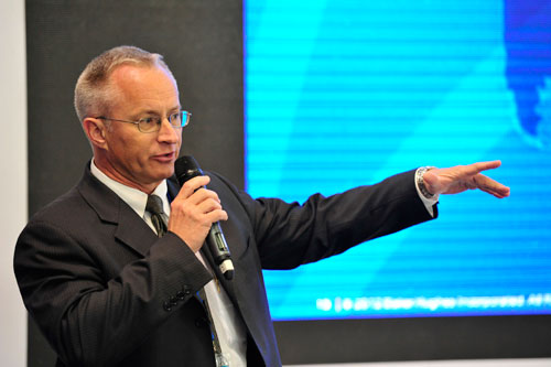 貝克休斯副總裁Freitag, Hans-Christian在展會現(xiàn)場向媒體介紹貝克休斯的發(fā)展歷史