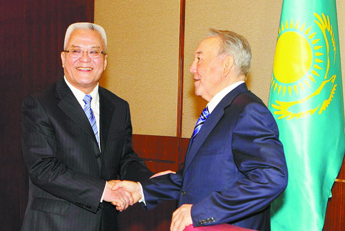 圖為周吉平拜會(huì)納扎爾巴耶夫總統(tǒng)。