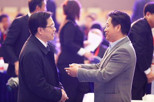 中石油裝備制造公司總經(jīng)理張晗亮(左)與中石化石油工程機(jī)械有限公司總經(jīng)理謝永金(右)親切交談