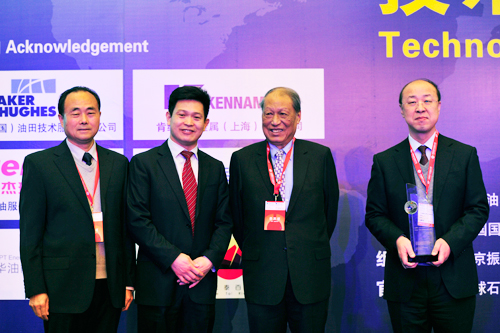 “第三屆cippe石油展展品創(chuàng)新金獎(jiǎng)”由中國(guó)石油集團(tuán)鉆井工程技術(shù)研究院研發(fā)的LG360/50型連續(xù)管作業(yè)機(jī)折桂。第九屆、十屆全國(guó)人大常委會(huì)副委員長(zhǎng)、國(guó)際金融論壇主席成思危先生為獲獎(jiǎng)單位頒獎(jiǎng)。
