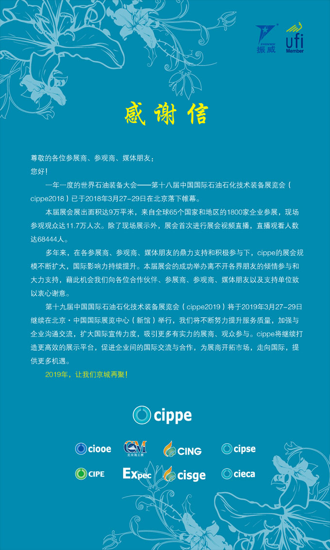 第十八屆中國國際石油石化技術(shù)裝備展覽會感謝信
