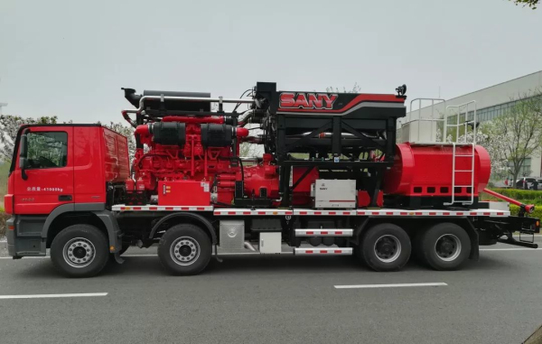 2018年初,首臺(tái)一體機(jī)由三一石油布置安裝在4橋卡車底盤上,并在威遠(yuǎn)頁巖氣區(qū)塊進(jìn)行壓裂施工。隨后,更多的設(shè)備制造商,包括中石油寶石機(jī)械和中石化四機(jī)公司選擇了卡特彼勒重量輕、高功率密度的一體機(jī)作為壓裂主動(dòng)力方案。