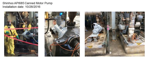 ▲美國(guó)某廢油再精煉廠使用新滬API685屏蔽泵成功替換原API610離心泵