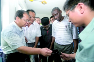 7月5日,尼日利亞國家石油公司副總裁一行3人來到河南油田采油一廠雙河礦參觀考察,詳細了解中方目前的原油開采工藝及流程,對中方的技術和能力給予充分肯定,堅定了合作的信心。圖為該礦負責人正在向外國客人介紹相關情況。